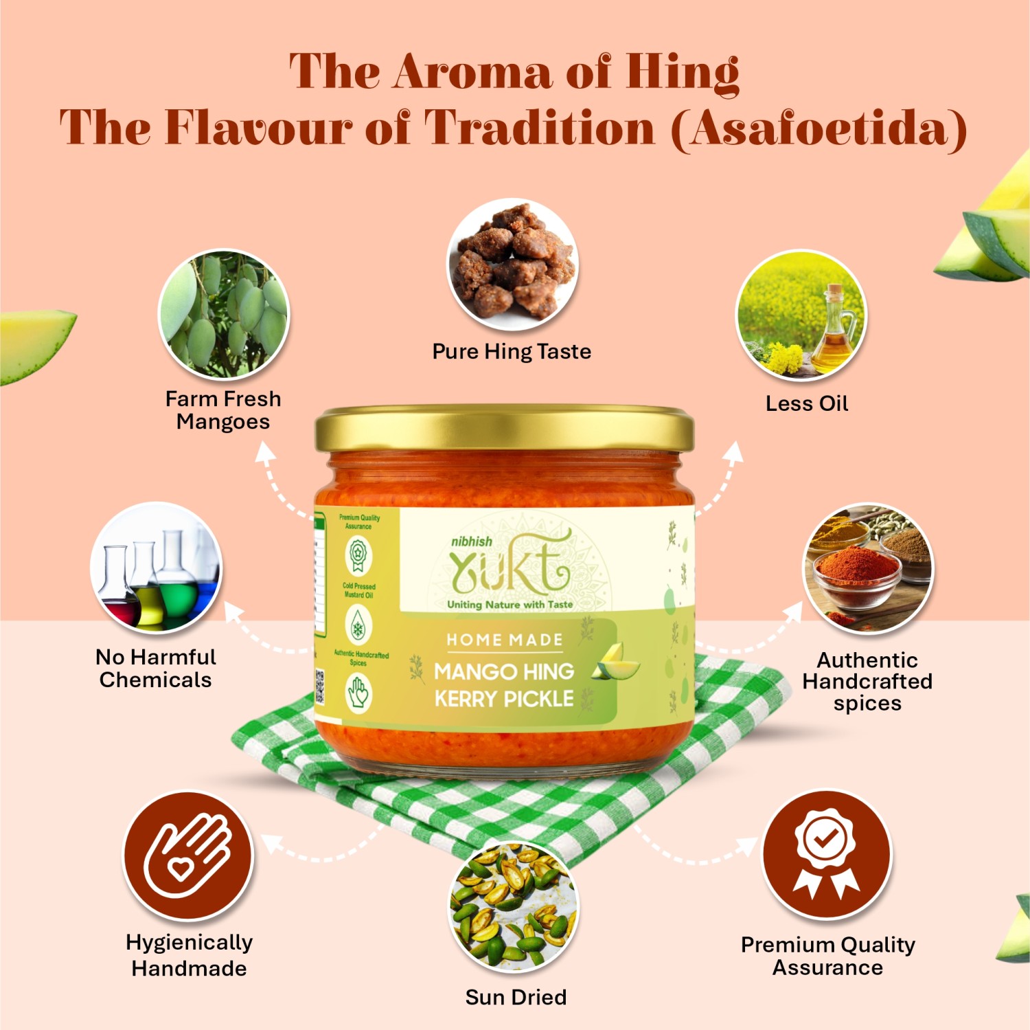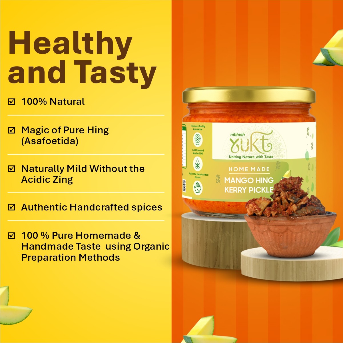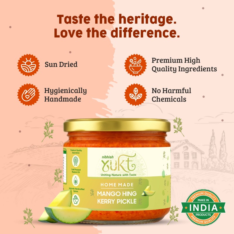 At Nibhish Enterprises (Yukt Foods), we bring you the timeless flavours of traditional Indian pickles and murabbas, handcrafted with love in small batches. Our recipes are rooted in family traditions, ensuring authentic taste, purity, and health benefits in every jar. We use only the finest quality ingredients, natural spices, and zero artificial preservatives to deliver true homemade goodness. From sweet murabbas to tangy pickles, our products add a burst of flavour to your meals. We believe in promoting healthier food choices by staying close to nature. Experience the rich taste of India’s culinary heritage with Yukt Foods.